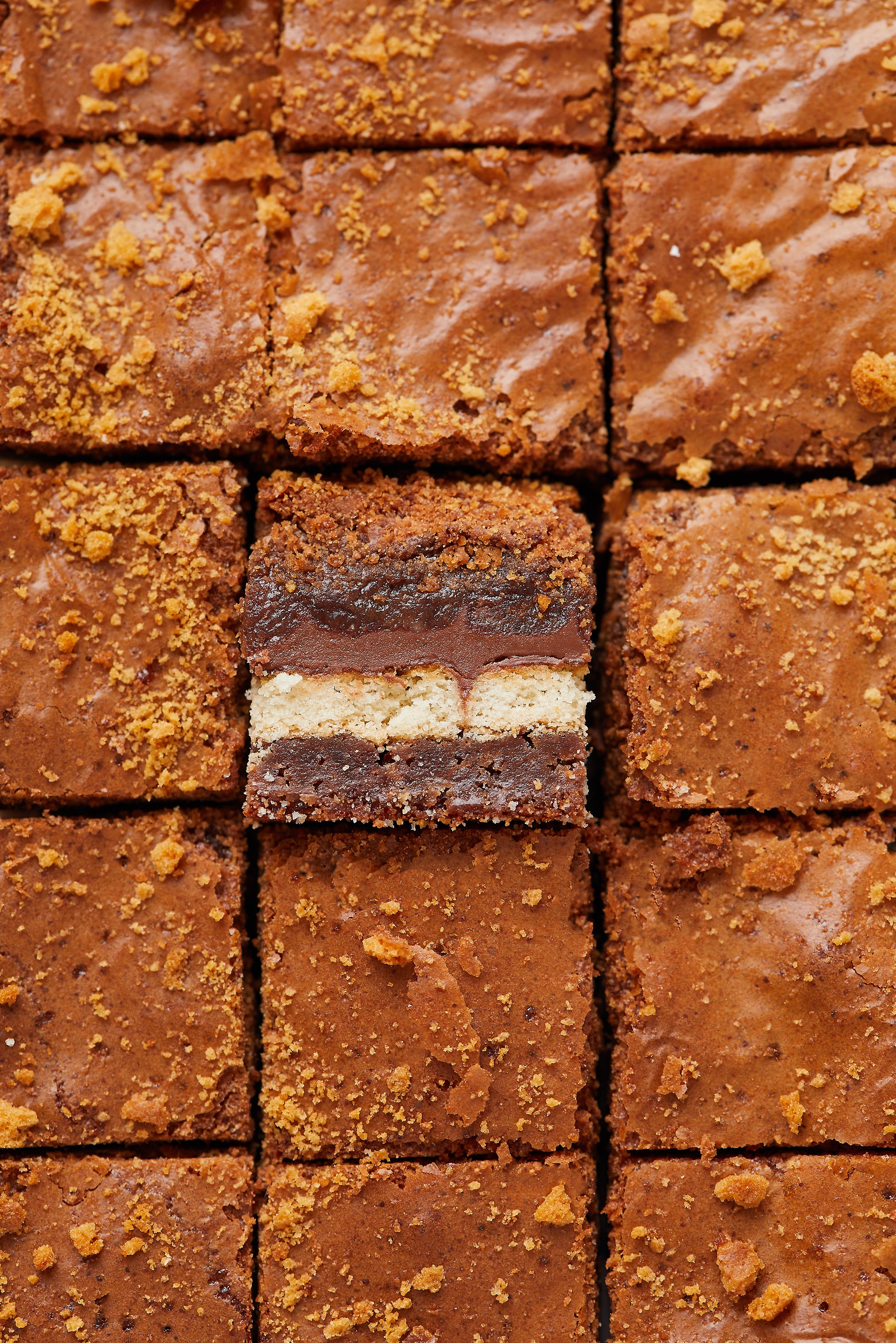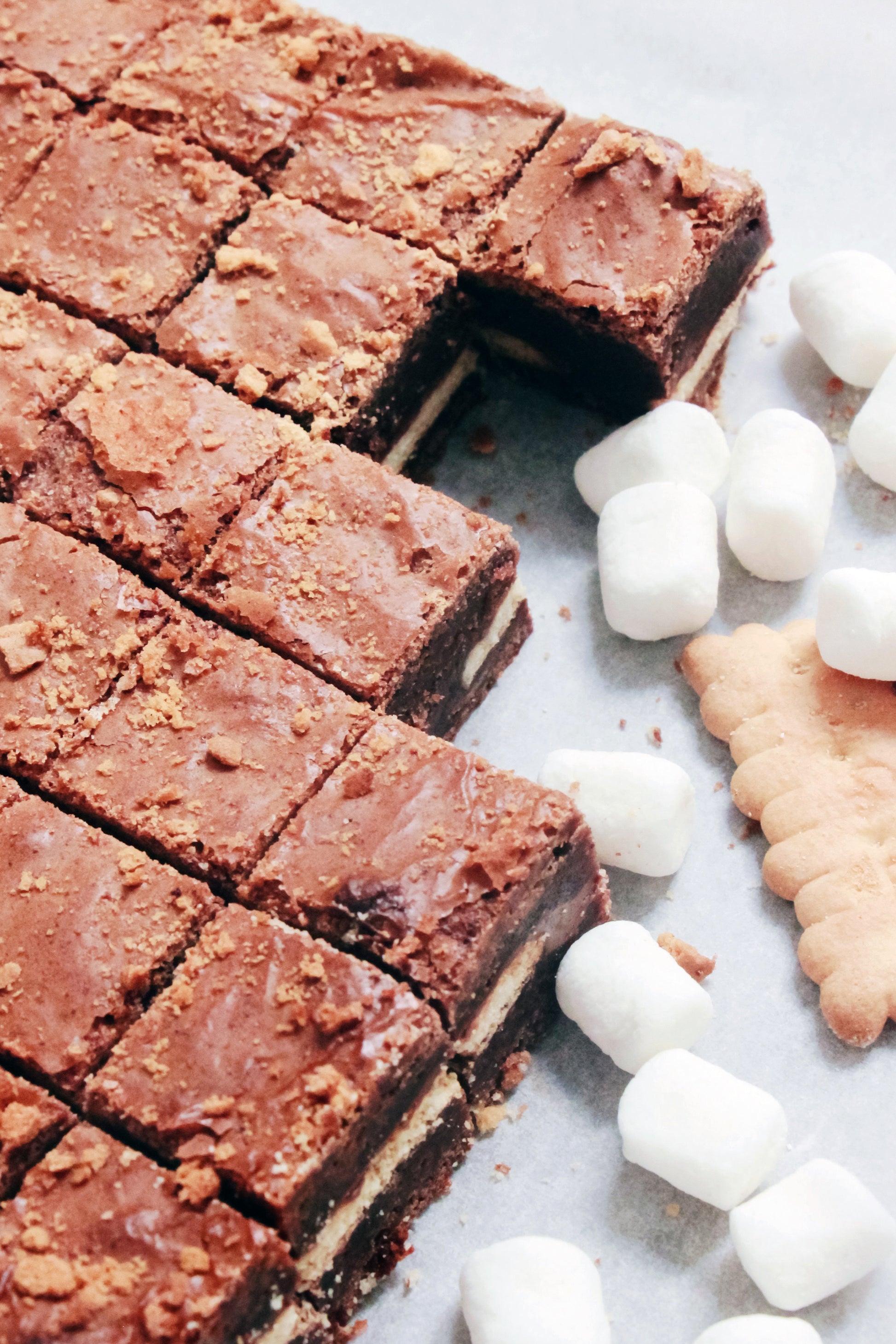 36 mini bites of brownies filled and layered with biscuit, chocolate and melted marshmallows, topped with crushed biscuits. this gooey melty brownie will be perfect for the winter season!
